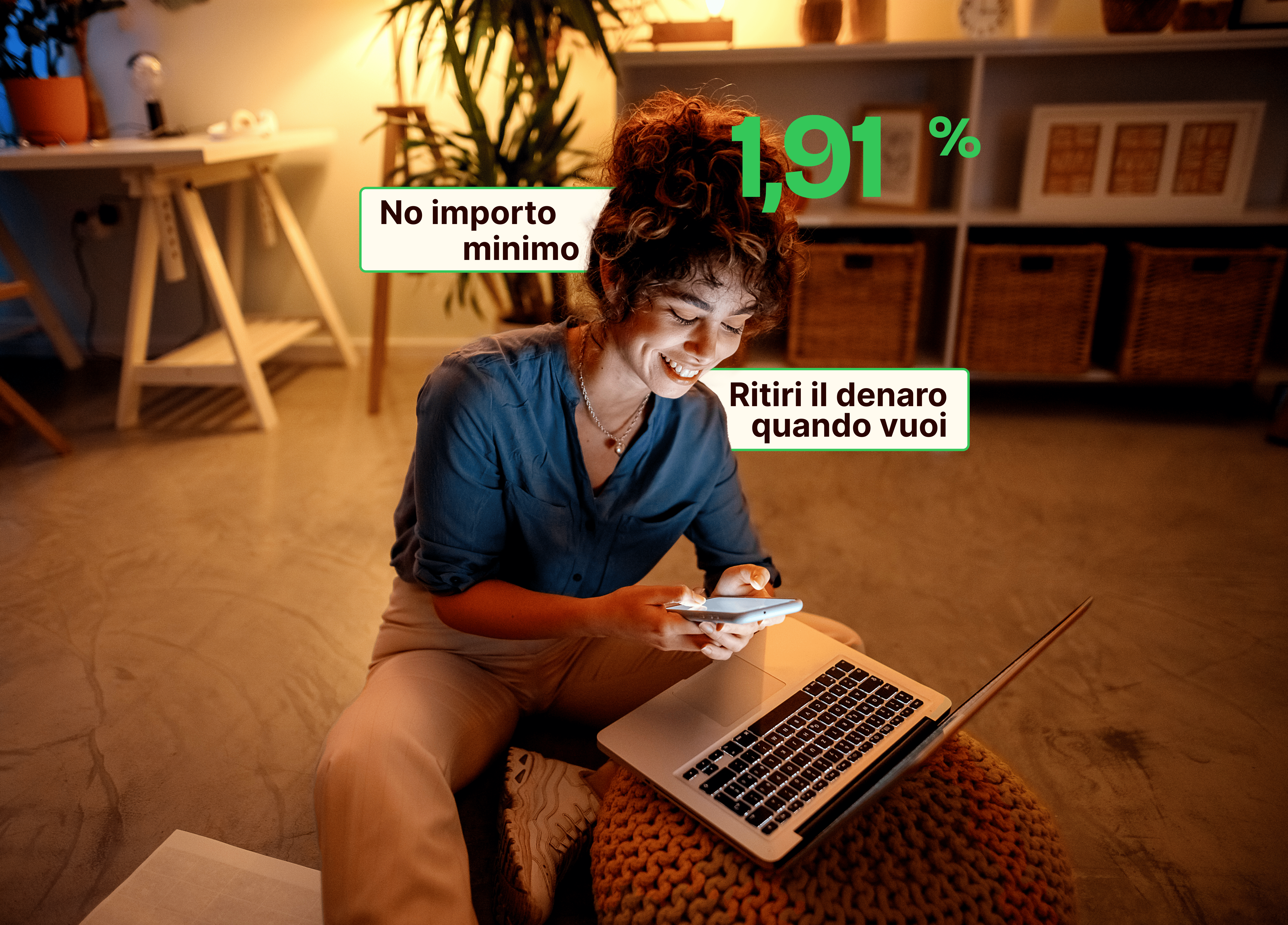 Disponibilità immediata del tuo denaro, senza limiti di prelievo o vincoli temporali. Nessun investimento minimo richiesto.